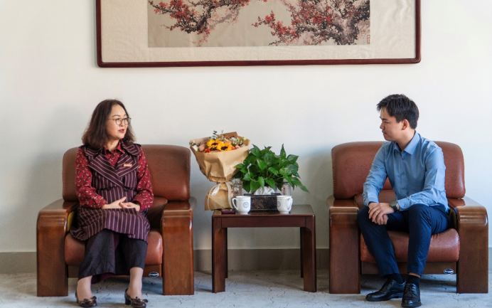 郑亚莉代表学校向郭桢父母表示热烈欢迎,衷心地感谢其作为学生家长对学校的关心和支持。同时,她对于郭桢父母设立的“郭桢爱心慈善基金”等一系列善举表示感谢,并表示这些“爱的种子”让更多学生感受到爱和正能量,学生们未来走上工作岗位也能更好地学会关爱他人、服务社会。