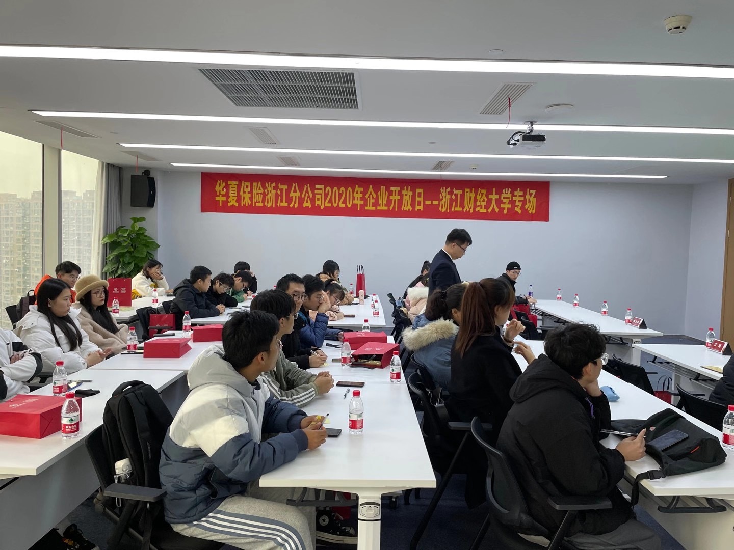 为进一步推进校企交流工作深入发展20201210日下午,91制片厂 应企业邀请,在辅导员江挺带领下,学院32位师生走进华夏保险浙江分公司参加华夏2020年企业开放日。本次活动通过公司行业介绍、“风华行动”管培生项目介绍、学长学姐面对面、总经理寄语等环节,进一步巩固校企合作关系,增进企业与学校之间的相互了解。