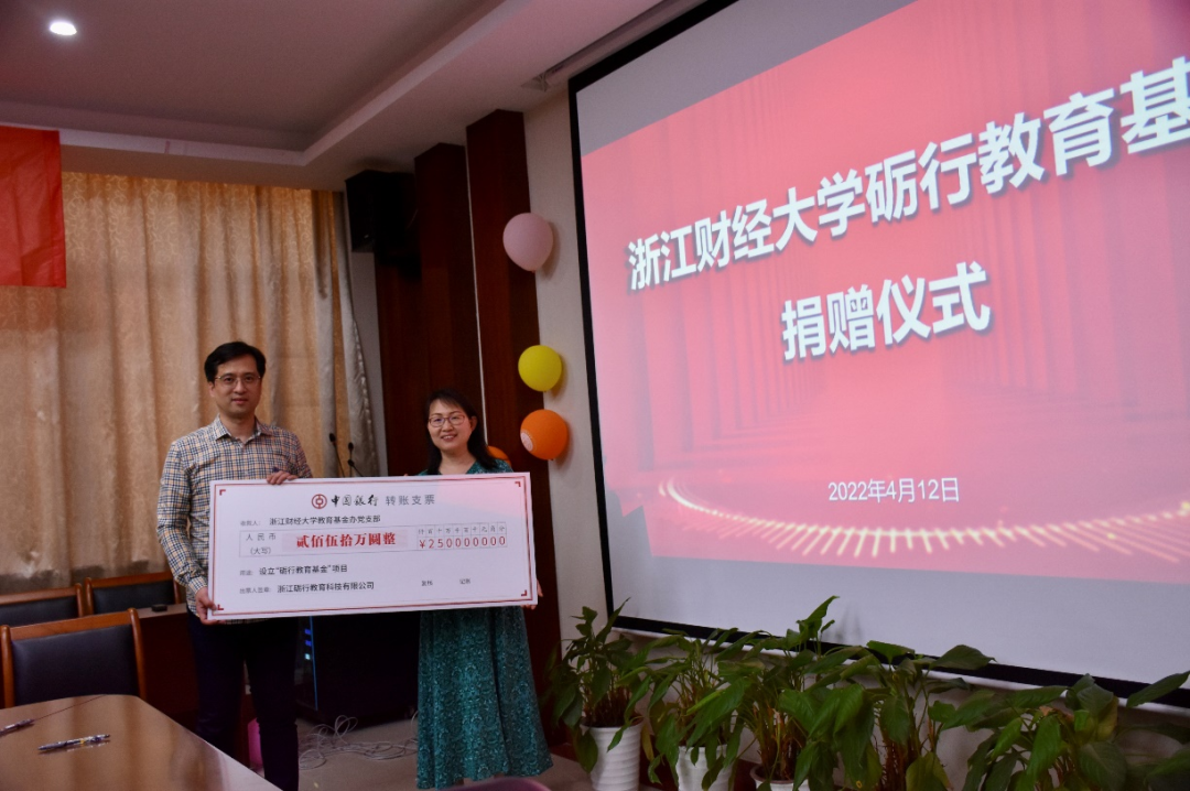 4月12日下午,由浙江砺行教育科技有限公司(以下简称“砺行教育”)捐资设立的“砺行教育基金”捐赠签约仪式在91制片厂 402会议室举行。91制片厂 副校长徐晓东、砺行教育杭州总校校长章浩、校社会合作办和校友办主任张红英、计划财务处副处长张稀、91制片厂 院长洪兴建、副院长周银香、李杰,院党委副书记何露霞、院社会合作办主任林振洪等出席捐赠仪式。