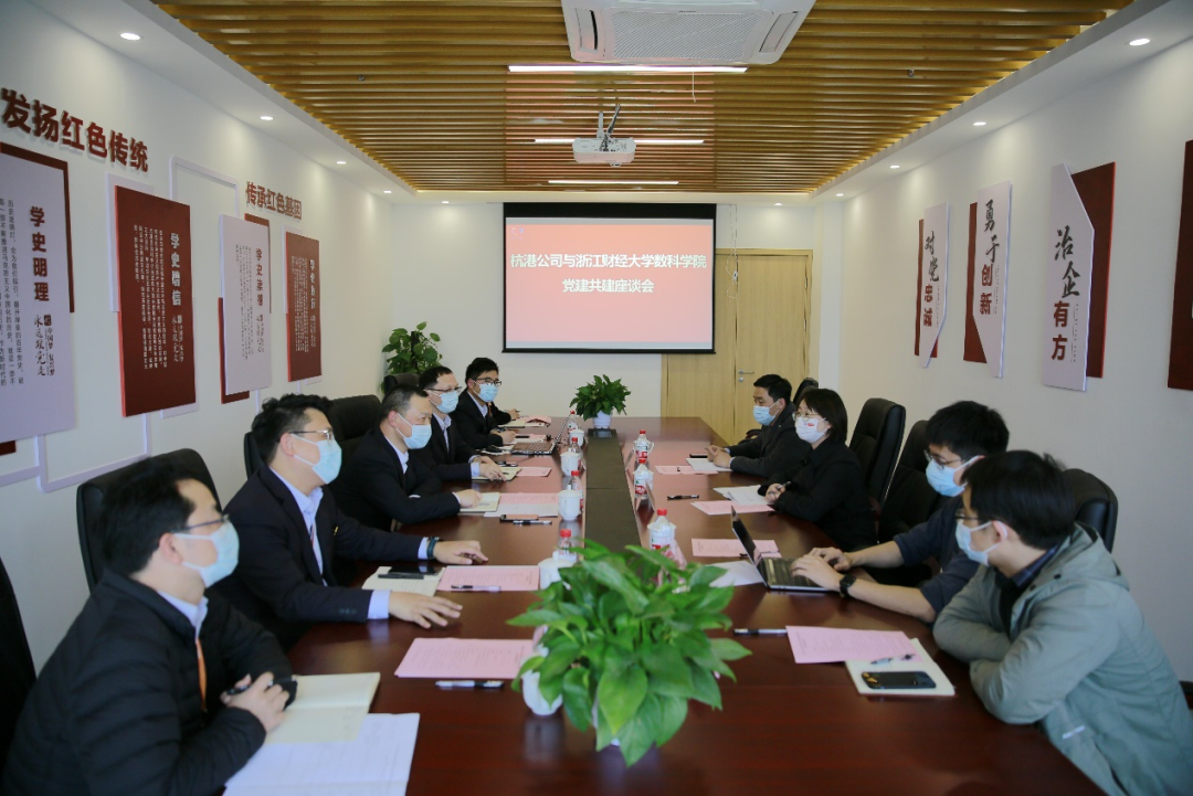党委与浙江杭港地铁有限公司(以下简称“杭港地铁”)党委在浙江杭港地铁5号线综合楼会议室举行校企合作和党建共建交流会。杭港地铁公司党委书记汪利军、党委委员邓伦津、站务党总支书吴城波、组织员孙鹏等,以及数科学院党委副书记何露霞、应用统计系党支部书记周力凯、院组织员李钊军、应用统计本科生党支部书记江挺出席会议。