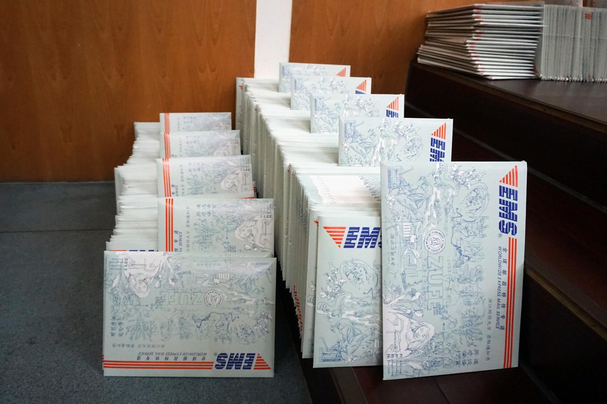 寄送录取通知书当天,数科学院各本科生党支部共6名代表来到录取通知书分装和寄送工作现场,他们合理分工,以认真严谨的态度,经过3个多小时的紧张工作,完成了182份录取通知书的分装任务。