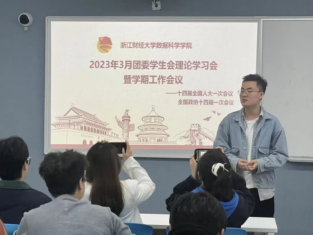 在第二项关于两会理论学习议程中,陈巍嘉带领全体学生干部仔细研读两会相关理论学习资料,加深对两会精神的感悟。他指出,“两会”是在全面贯彻党的二十大精神开局之年召开的一次十分重要的会议。他号召同学们要发挥先锋模范作用,要把握大势,抓住新征程新发展的机遇,将两会精神落实到学习工作中去。学生干部们在本次理论学习会上收获颇多,各部门和协会都积极发表了各自的心得体会。
