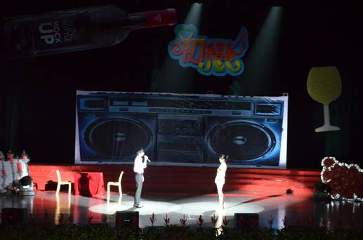 首发一场歌伴舞《滚滚红尘》拉开了序幕。白影曼曼,高歌引吭,何露霞老师的顶力出场轰出一股热浪,让同学们激动不已。紧接着由08、09、11级联合打造的小品《毕业那天,我们一起失恋了》上演了大学中那不羁的爱情,带来了阵阵欢笑。之后劲辣的舞蹈《cry cry》更是点燃了台下的观众,现场气氛很是高昂。