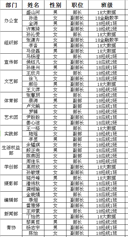 通过个人报名,现场竞聘演说,学院老师面试,经院学生工作办公室研究决定,现将名单公布如下: