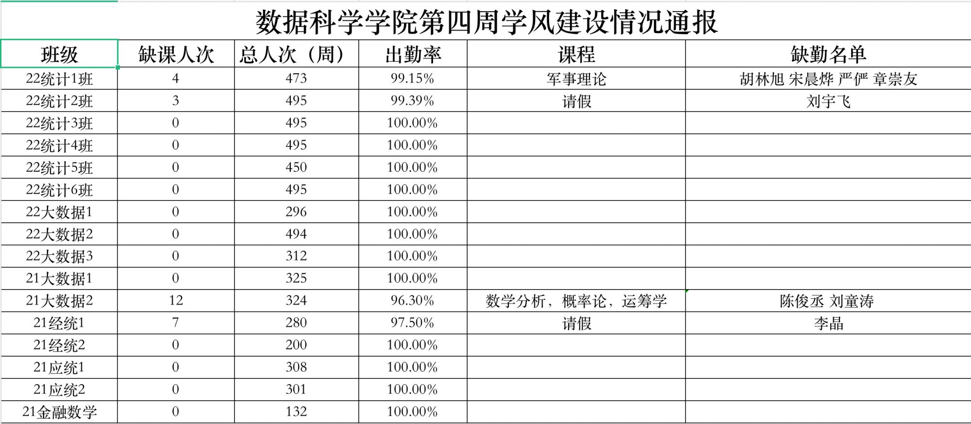 为进一步培育优良学风,构建91制片厂 学风建设的长效机制,营造良好的学习氛围,推进内涵建设,构建优良院风,学院对所有大一、大二班级统一上的课程及晚自习进行了课前全覆盖点名。现将点名情况做如下通报。