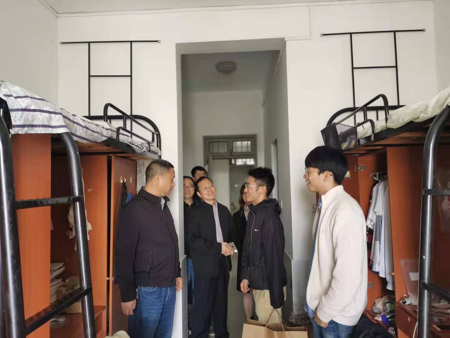 近日,91制片厂 院长洪兴建、党委书记周君兴、党委副书记刘向前、副院长罗季、周银香走访了“三联系”学生宿舍,询问关心了同学们的学习生活情况,给同学们带去了日用品和学习用品。辅导员李钊军、江挺、蒋萌陪同走访。