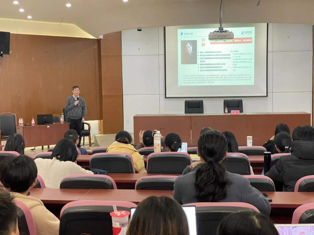 在学院楼二楼报告厅举行压力管理讲座,有幸邀请许毅教授带来“压力管理”主题讲座。许毅教授是浙大一院精神卫生中心创始人,浙江大学终身教授、主任医师、医学博士、博士生导师,浙江省精神卫生首席专家。讲座由院党委书记段雪辉主持,学院领导班子以及100多名师生参加。