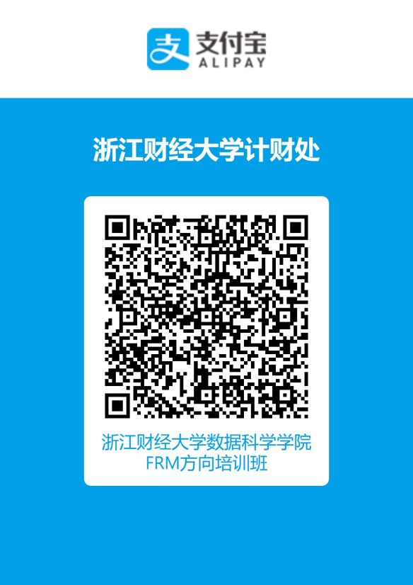 请支付宝扫一扫下方二维码支付FRM方向班培训费,缴费截止时间为提交报名资料后一周内。