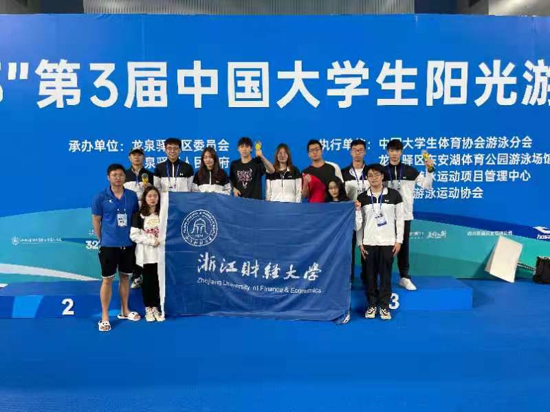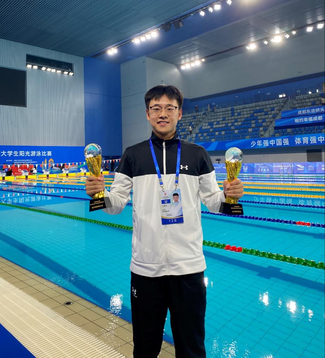 在本次比赛中,研究生第一党支部成员研究生王意伟获得了男子200m蛙泳第三名、男子4*100m混合泳第二名。