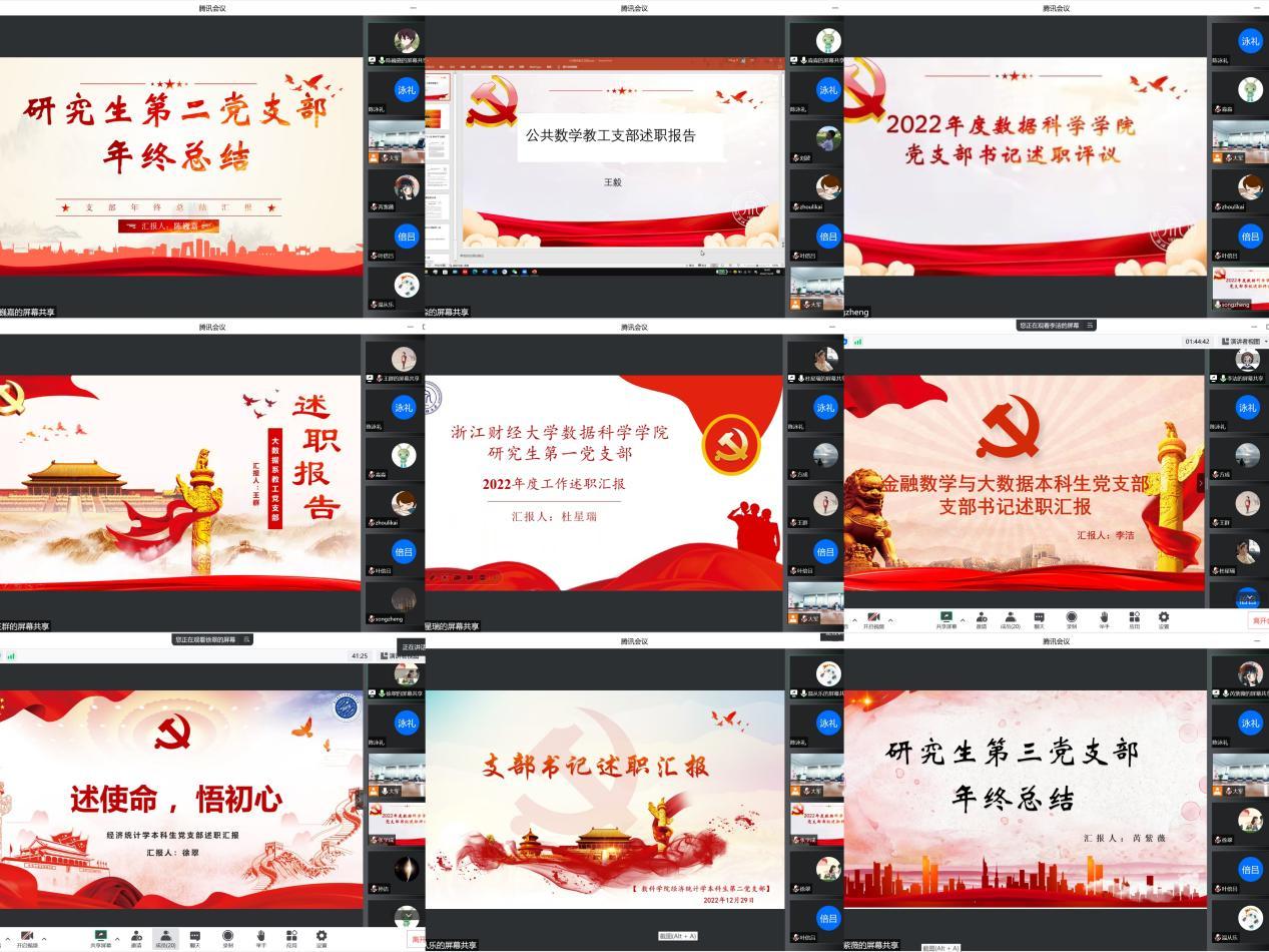 12月29日下午,数据科学学院党委在线上举行了2022年度党支部书记述职评议专题会议。会议由党委书记段雪辉主持,学院党委委员、各党支部书记参加了本次会议。