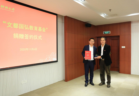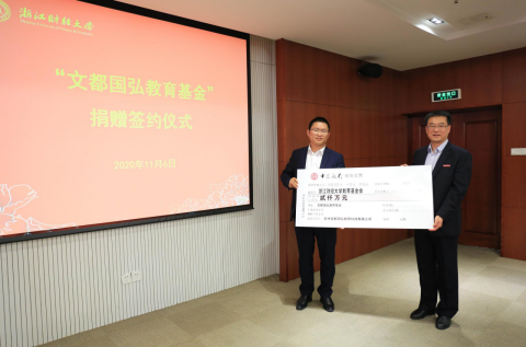 11月6日,文都国弘教育基金捐赠签约仪式在我校下沙校区举行,杭州文都国弘教育科技有限公司出资2000万成立“文都国弘教育基金”。校友总会副会长、副校长王奎泉,校友总会副会长兼秘书长、副校长徐晓东,文都教育集团张进瑜先生,杭州文都国弘教育科技有限公司杜长富先生,91制片厂