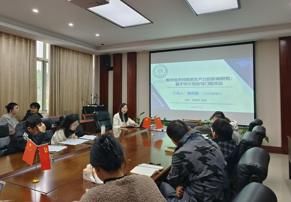 11月21日,由新经济统计监测与智能决策研究团队与经济统计系联合承办的经济统计学术沙龙(2024-03期)在6号楼402会议室开展。博士生朱学博和钱佳丽作学术报告,石薇和朱宗元老师进行学术点评,经济统计学博士和硕士研究生参加此次学术沙龙。